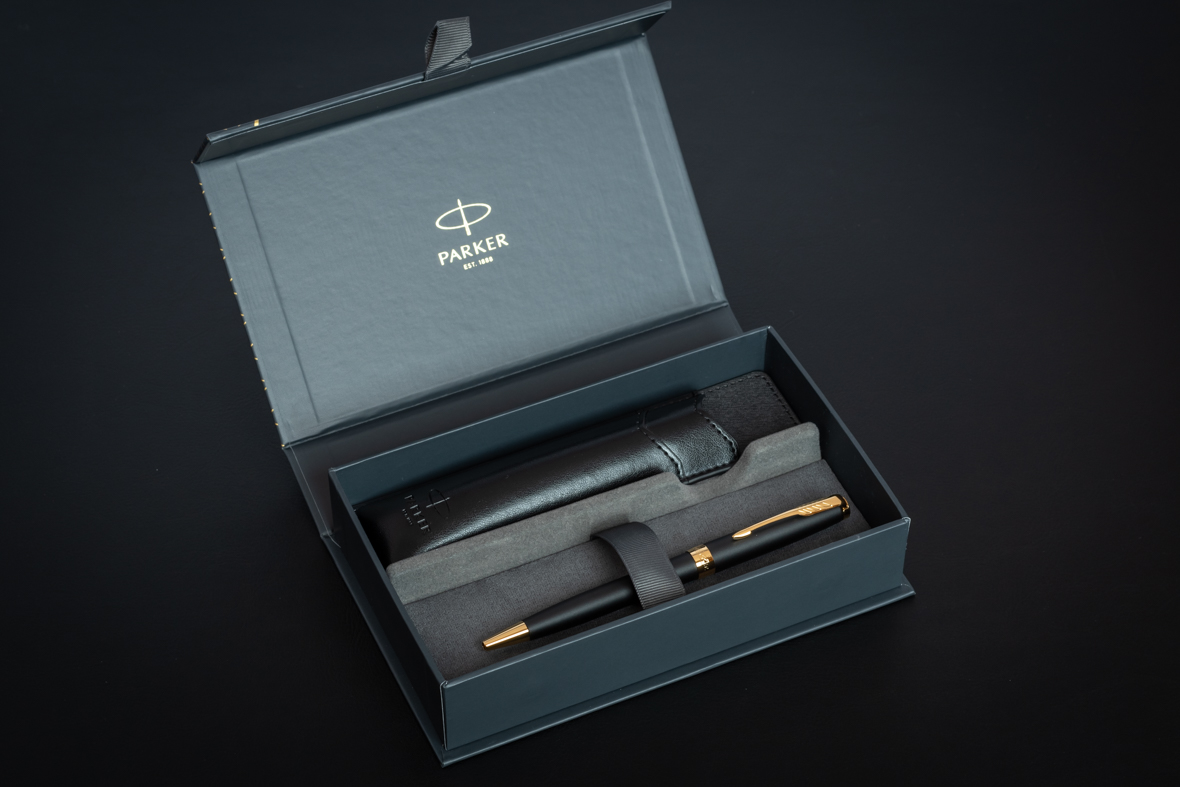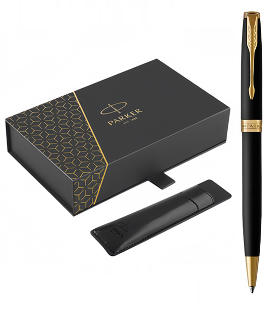 Набор Parker Sonnet Black GT (шариковая ручка + чехол) от официального дилера Parker в Альметьевске. Вы можете дополнительно заказать гравировку, которая подчеркнет Вашу оригинальность и придаст памятность статусному подарку. Все ручки Паркер поставляются в фирменном футляре.