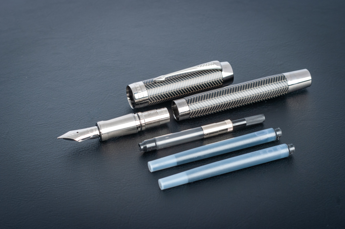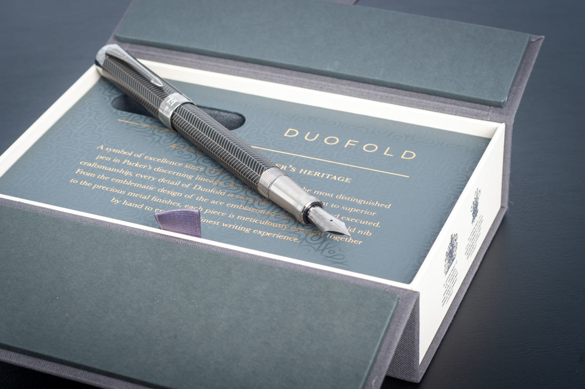 Перьевая ручка Parker Duofold Prestige Centennial Black Chevron CT от официального дилера Parker в Альметьевске. Вы можете дополнительно заказать гравировку, которая подчеркнет Вашу оригинальность и придаст памятность статусному подарку. Все ручки Паркер поставляются в фирменном футляре.